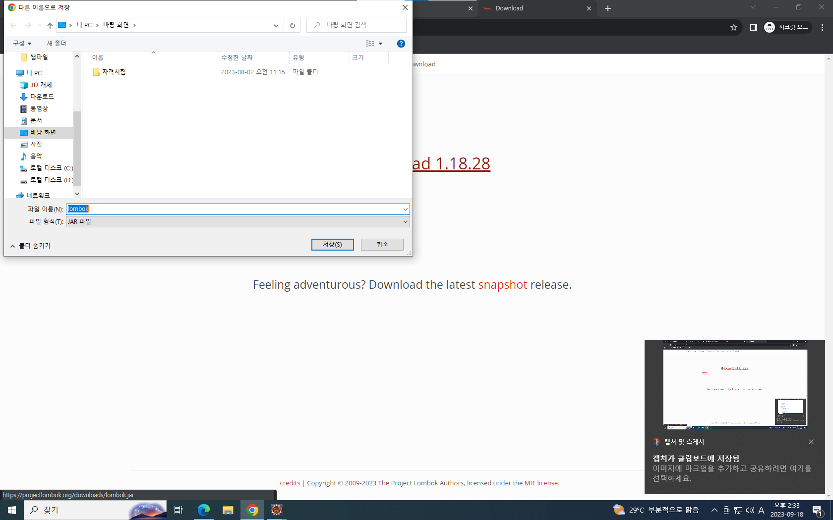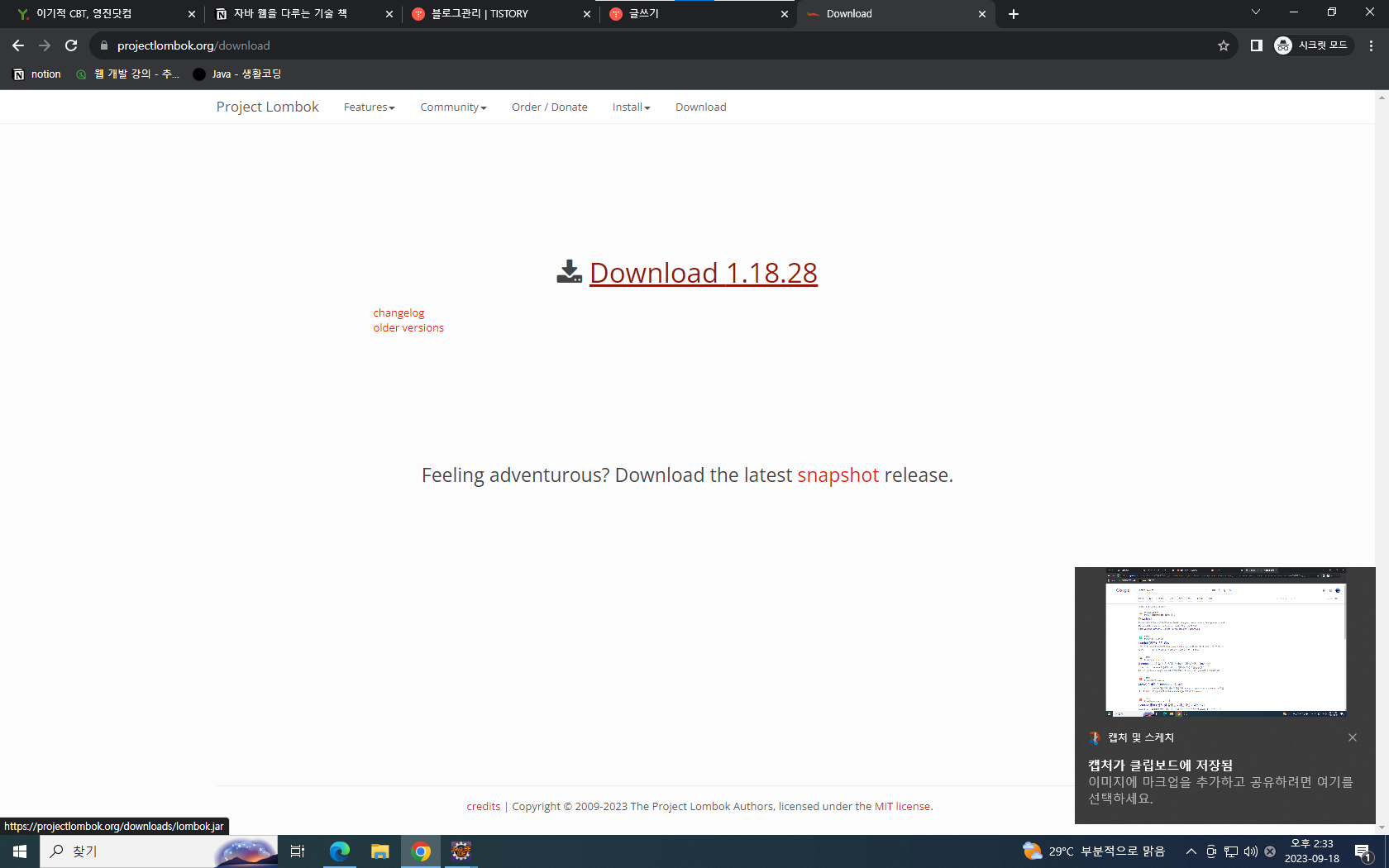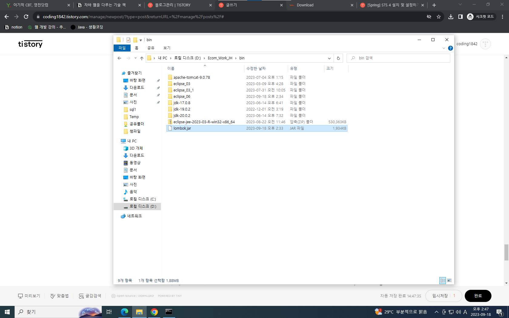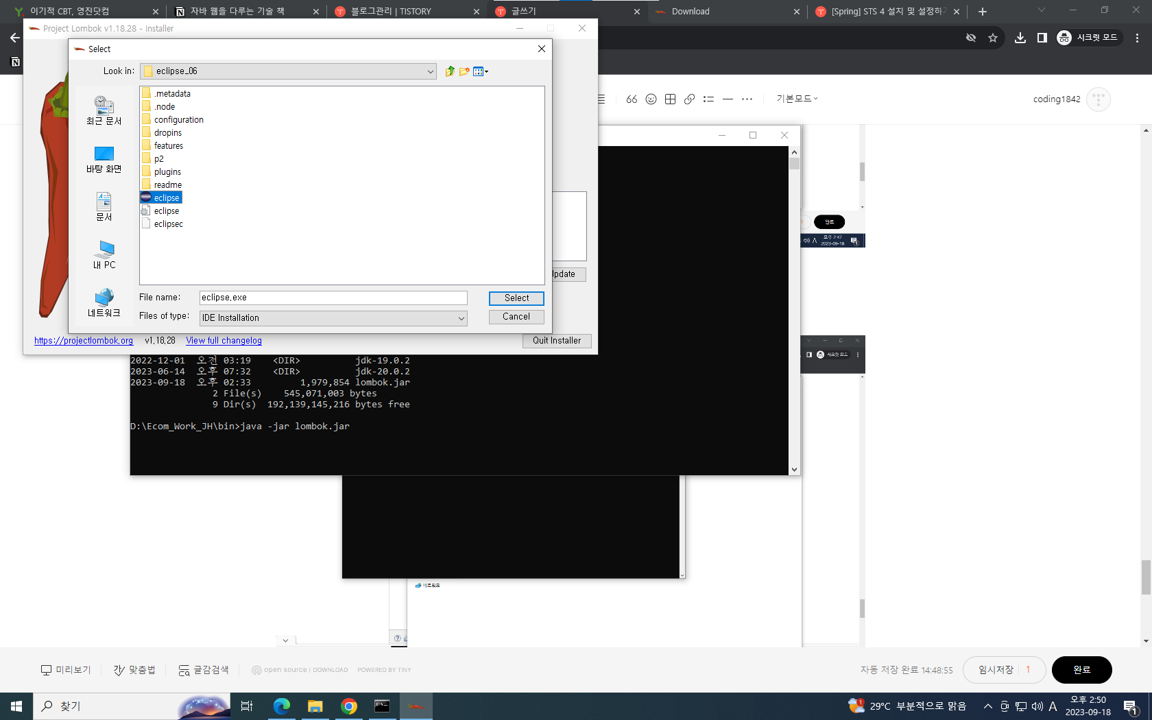 java -jar lombok.jar 검색후 엔터누르면