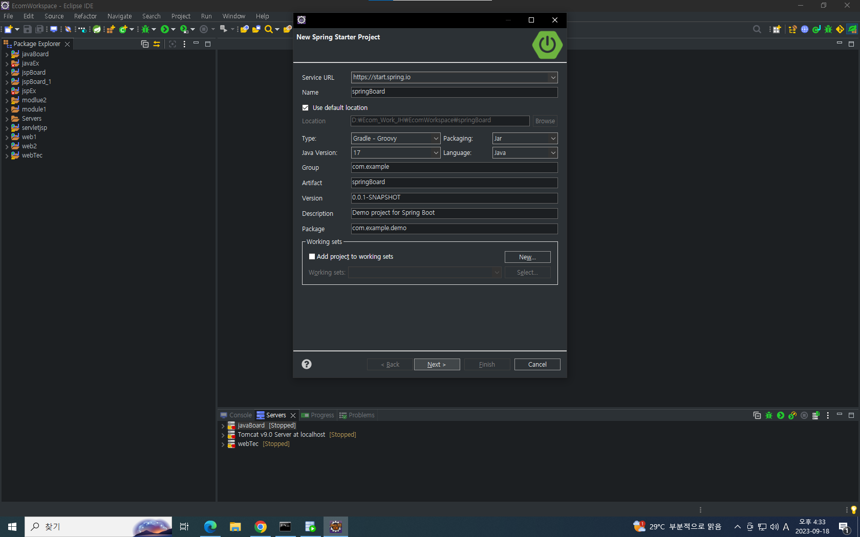 새로 만들기에서 스프링하고 스프링부트 다 나와야함