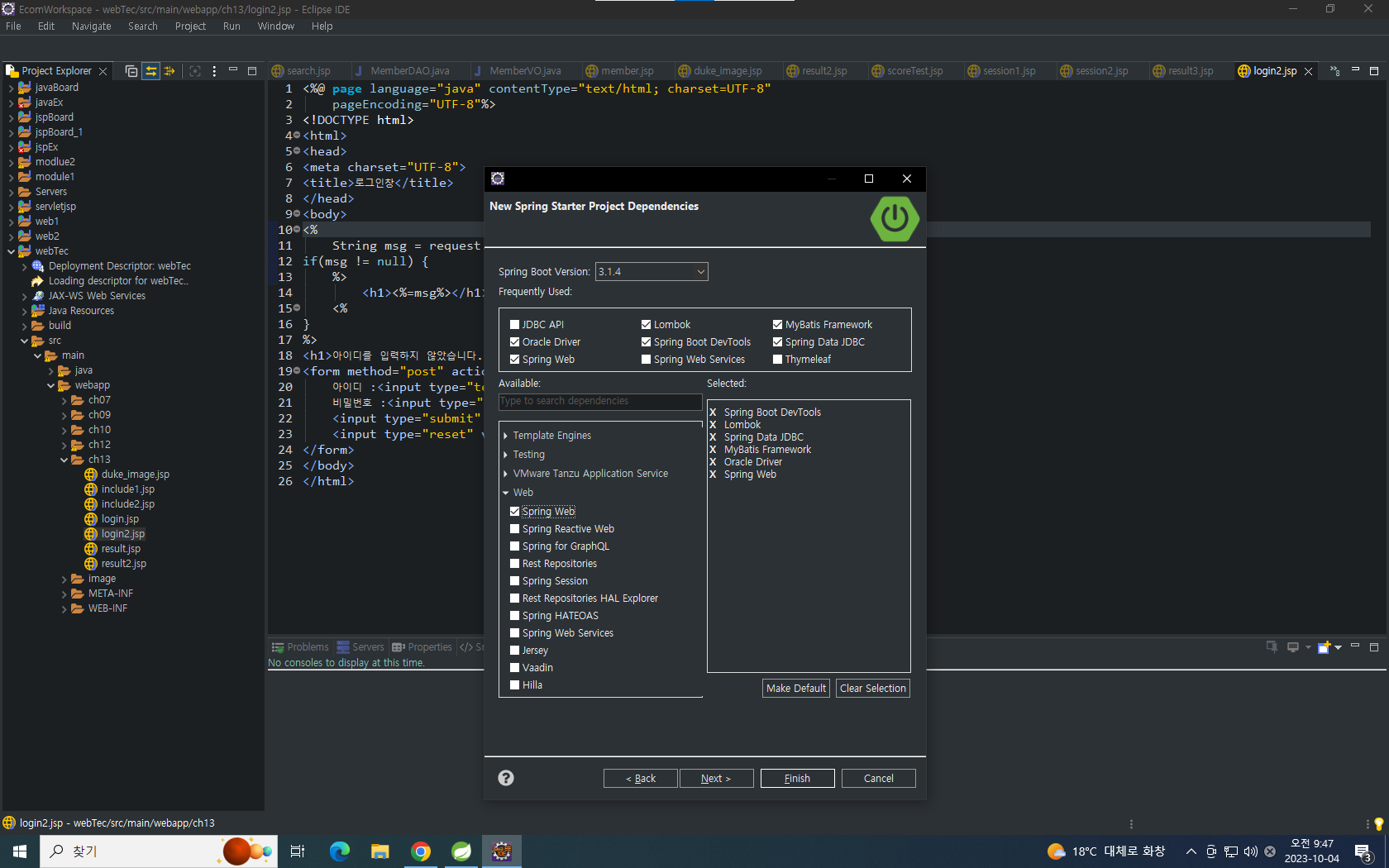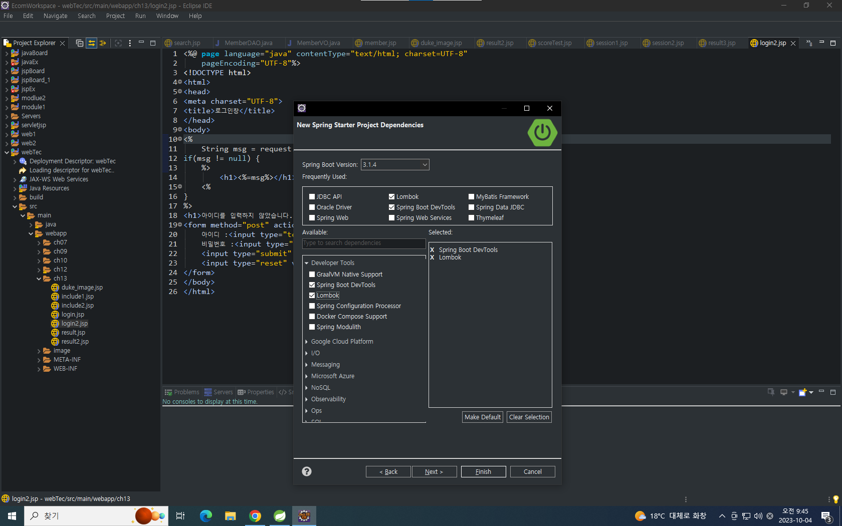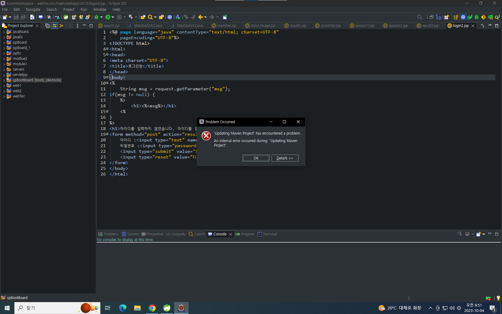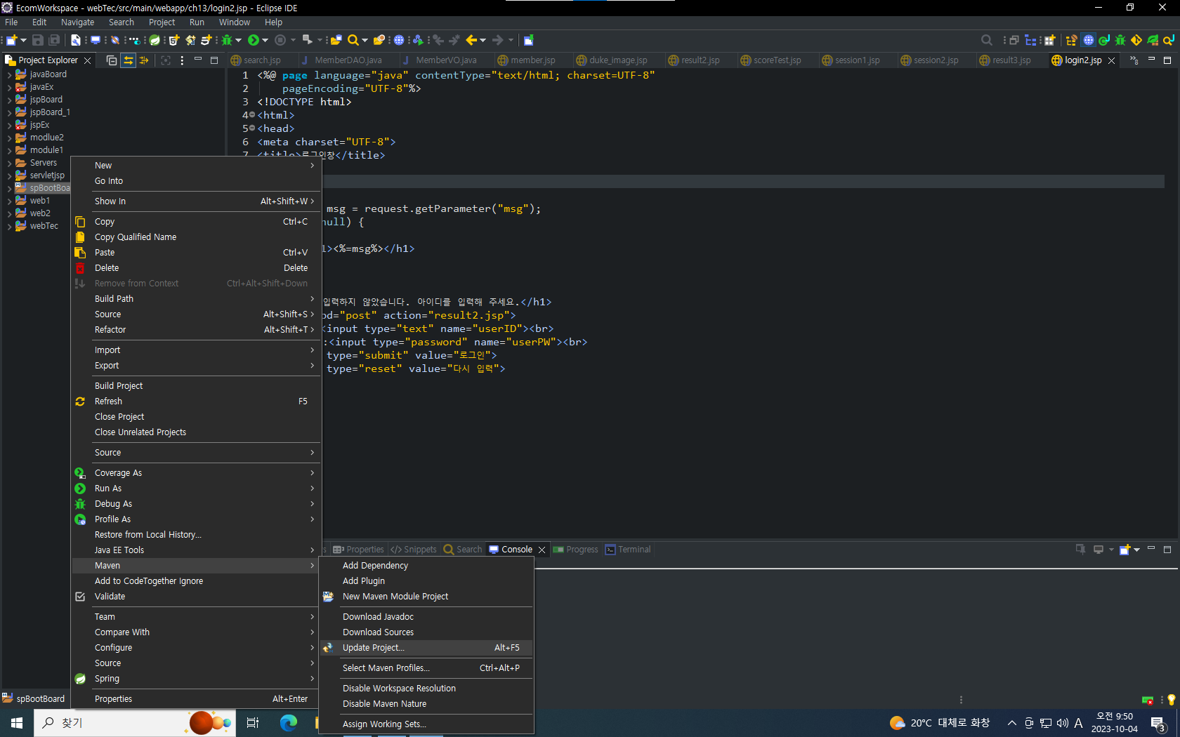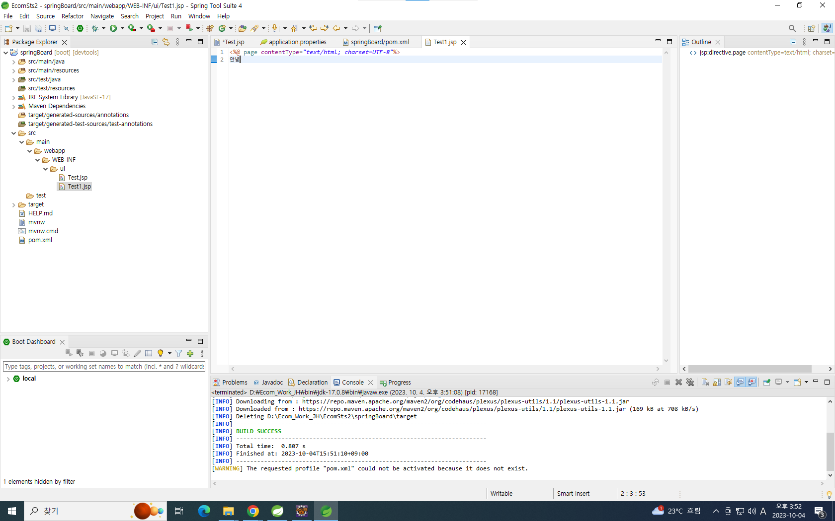 이번전으로 하니까 jsp파일도 생성 할 수 있고 pom.xml 오류도 안뜬다
